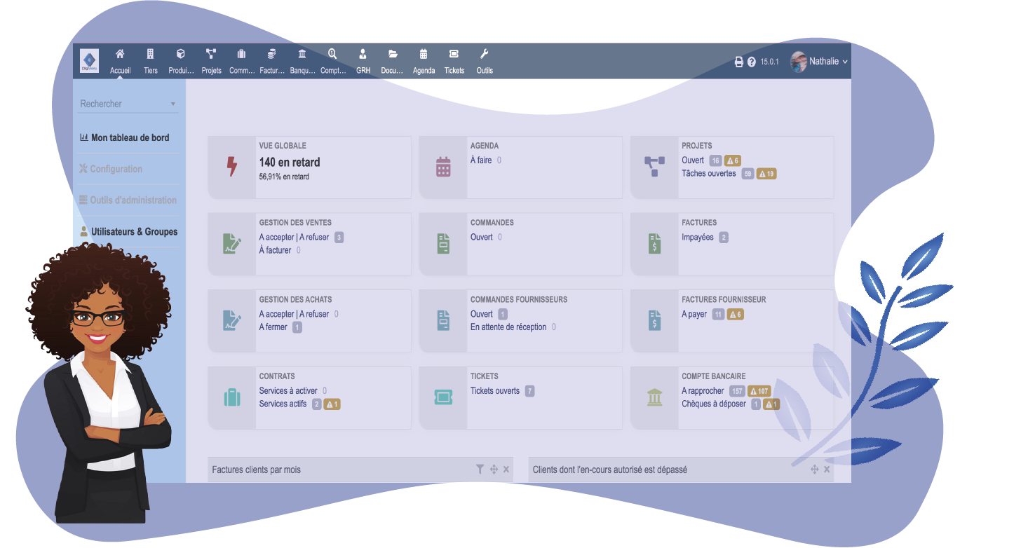 Dolibarr est un logiciel libre, sans frais récurrents d'exploitation, facile à utiliser et à prendre en main.
